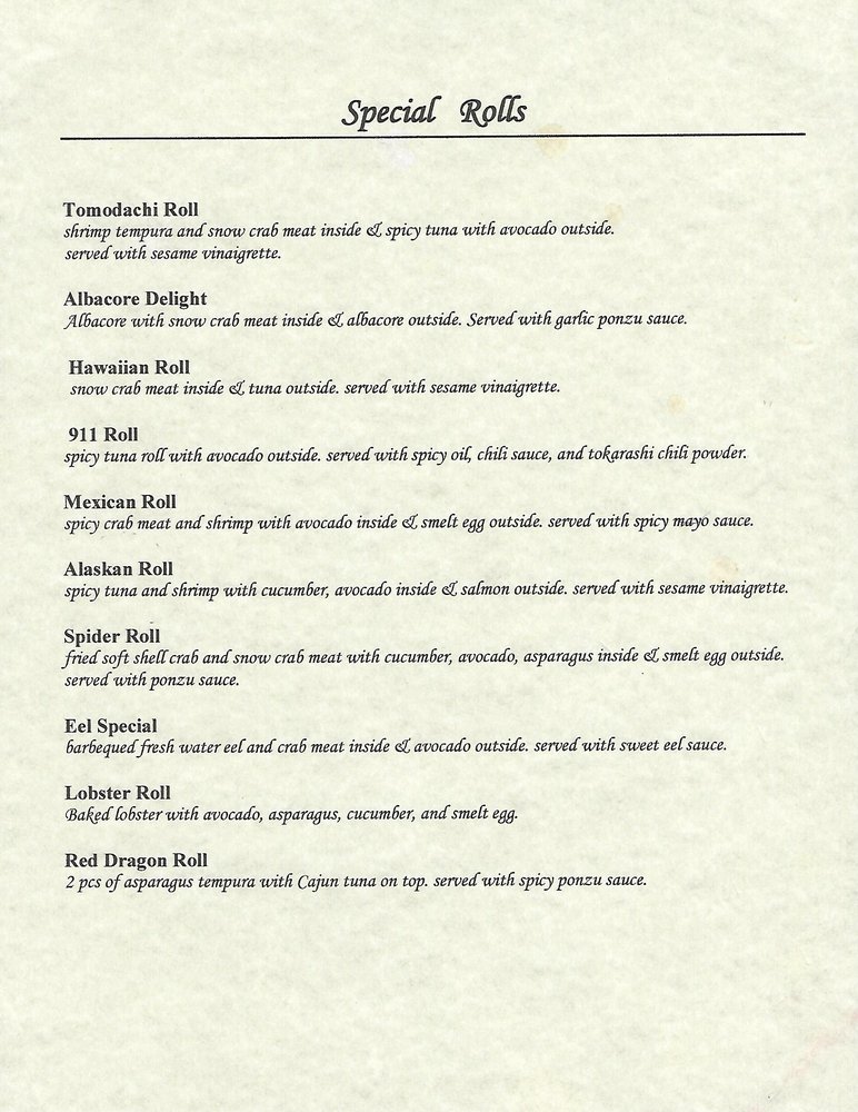 Tomodachi is a Japanese seafood restaurant and sushi bar located in Thousand Oaks, CA. Known for its wide range of special rolls like the Alaskan Roll, Dynamite Roll, and Red Dragon Roll, Tomodachi offers a variety of options for sushi lovers. The menu also includes unique dishes like KatsuPork, Mama San Roll, and Sashimi Tempura Roll. With options for vegetarians and a casual atmosphere, Tomodachi is a great spot for groups, families, and individuals looking for a delicious Japanese dining experience. The restaurant offers takeout, delivery, and catering services, making it convenient for customers. Whether you're in the mood for a classic sushi roll or something more adventurous, Tomodachi has something for everyone to enjoy.